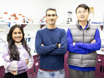 Shriya Jitendra Kalburge, left, and Yining Zhang, right, students in the M.S. in Biotechnology Management and Entrepreneurship, teamed with Dr. Ran Drori, an associate professor in the Department of Chemistry and Biochemistry at YU, on the study.